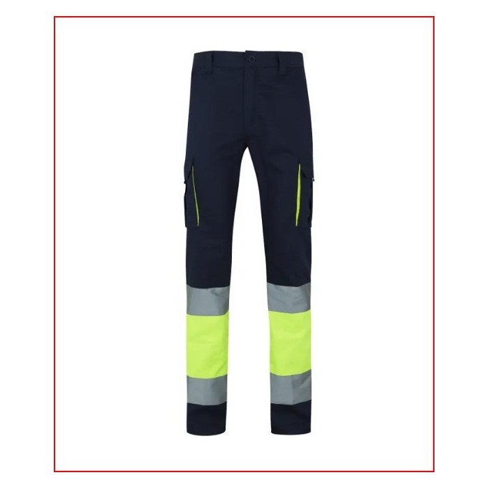 PANTALON 100% ALGODON ALTA VISIB.AZUL NAVY/AMARILLO FLUOR T-4XL