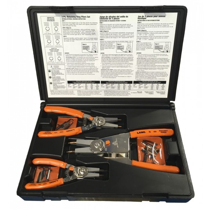 1465 JUEGO 3 ALICATES SEEGER ALICATES PARA ANILLOS SEGUER CON PUNTAS INTERCAMBIABLES INTERIORES Y EXTERIORES.MECANISMO DE DETENCION DE REGULACION PARA FACILITAR EL USO Y EVITAR DAÑOS A LOS ANILLOS DEBIDO A UNA FUERZA EXCESIVA.INCLUYE TODAS LAS PUNTAS.